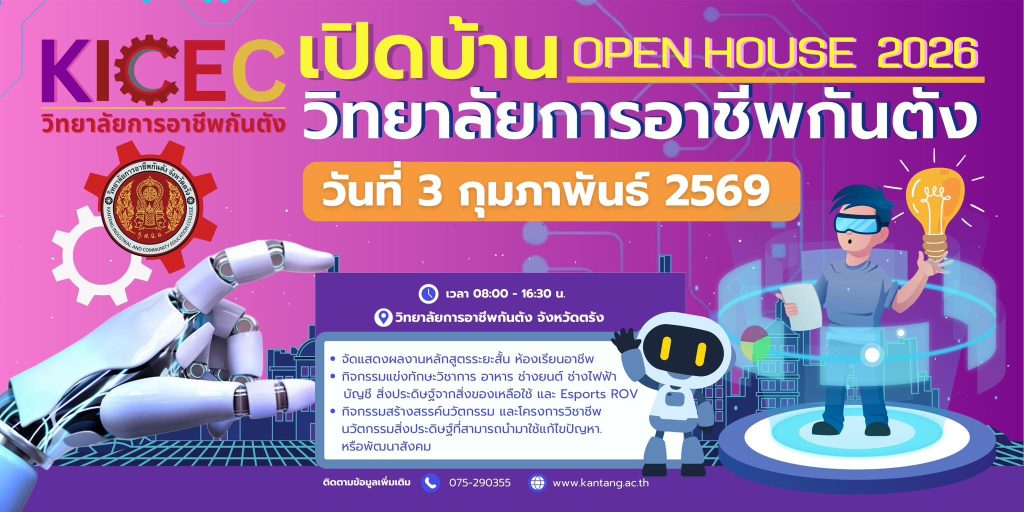 เวลา 08.00 – 16.30 ณ วิทยาลัยการอาชีพกันตัง