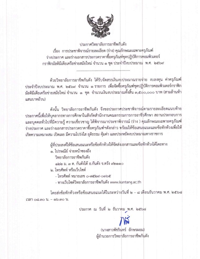 เผยแพร่ร่างประกาศและร่างเอกสารประกวดราคาซื้อครุภัณฑ์ชุดปฎิบัติการคอมพิวเตอร์กราฟิกมัลติมิเดียเครือข่ายสมัยใหม่ 31 ตุลาคม 202531 ตุลาคม 2025 รวมเอกสารพิจารณ์ขึ้นเว็บวิทยาลัยฯดาวน์โหลด
